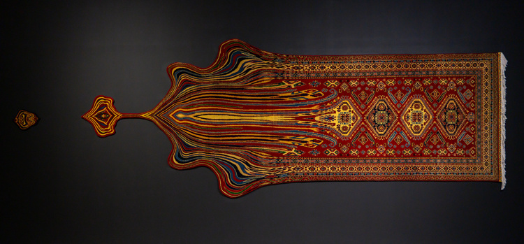 На площадке Maraya Art Centre в Шардже (Объединенные Арабские Эмираты) проходит персональная выставка художника Фаига Ахмеда Consciousness in Flux («Сознание в потоке»). Визуальные исследования Фаига Ахмеда уже много лет связаны с традицией национального ковроткачества. Фаиг смело играет с узорами азербайджанского ковра: раскладывает орнамент на пиксели, взрывает его изнутри, заставляет растекаться и расползаться, превращает в водопад нитей и в языки пламени. При этом он отлично понимает суть традиции, умеет находить общий язык с мастерами ковроделия, читать и интерпретировать древние орнаменты. В кураторских текстах о проектах Ахмеда часто фигурирует слово «деконструкция». По сути, оно сбивает с толку и мешает пониманию задач художника. Фаиг не разрушитель традиции, а один из немногих ее знатоков и последователей: ковер в его интерпретации – живой организм, который нуждается в умном исследователе. Это образ космоса, и на его примере автор пытается объяснить многие явления из области ф