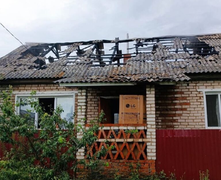 Во втором городе Брянской области Клинцы молния во время сегодняшней непогоды ударила в крышу частного одноэтажного дома, став причиной большого пожара. Несчастье приключилось в начале одиннадцатого утра 18 июля. О нем стало известно из тревожного сообщения, поступившего в оперативную дежурную смену Главного управления МЧС России по Брянской области. Горел жилой частный одноэтажный дом по адресу: город Клинцы, 1-й переулок Плющенко. – К тушению огня привлекались две пожарные автоцистерны. Пожар ликвидирован. Пострадавших нет. Огнём повреждена кровля и стена дома на площади 100 метров квадратных, – говорится в официальном сообщении спасательного ведомства региона. Причиной пожара стала “стрела” молнии. Хотя может быть и шаровая молния. Интересно, что хозяева утраченного жилища то ли собирались незадолго до стихии занести в дом новый холодильник, еще в коробке, то ли просто успели его спасти от огня, вытащив на крылечко. Бытовой прибор запечатлен на фотографиях пресс-службы МЧС – на фоне