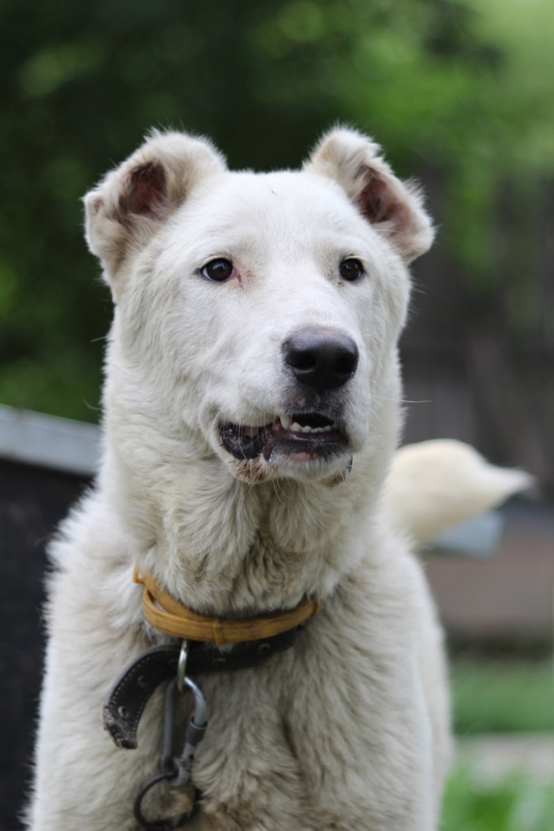 Недавно в приют поступила самка, метис САО (среднеазиатская овчарка). Молодой особе примерно 8-10 месяцев.