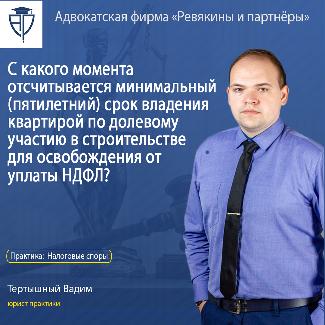 ⁉️ На практике зачастую встречается вопрос о том, с какого момента отсчитывается пятилетний срок владения квартирой, приобретенной по договору долевого участия в строительстве, для освобождения от уплаты НДФЛ? С момента частичной или полной оплаты за квартиру, ввода дома в эксплуатацию или передачи квартиры, либо же регистрации права собственности на неё в реестре?