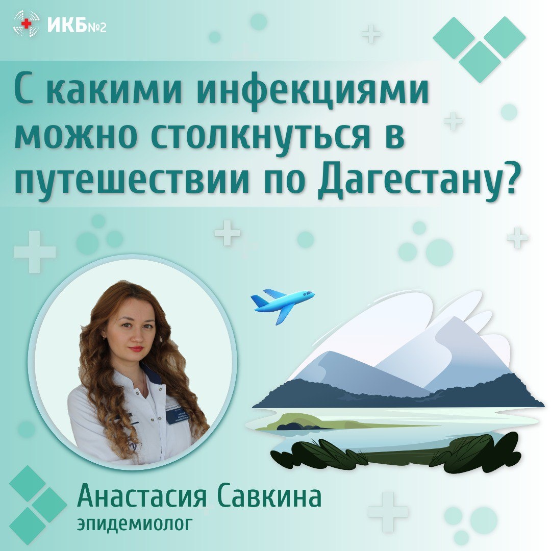 Новая рубрика - #турсезон! Собираетесь в путешествие по Дагестану? Наш эпидемиолог Анастасия Савкина рассказывает с какими болезнями можно столкнуться в этом регионе. «Главной угрозой для туристов являются кишечные инфекции. Мы напоминаем, что они подразделяются на два вида – бактериальные и вирусные. Бактериальные кишечные инфекции связаны в первую очередь с несоблюдением правил гигиены и употреблением загрязненных бактериями продуктов и воды. Яркими примерами таких инфекций являются дизентерия и сальмонеллез. Заразиться ими можно через плохо промытые овощи, зелень, ягоды и фрукты, употребление воды из открытых источников. В случае с сальмонеллезом к этому списку добавляются инфицированные яйца и мясо, не прошедшиеполную термическую обработку. Симптомы этих заболеваний очень схожи, к ним можно отнести: повышенную температуру, боли в животе,интоксикацию, диарею и рвоту. Что касается вирусных - здесь заражены могут быть не только продукты питания, но и морская вода. Чаще всего возбу