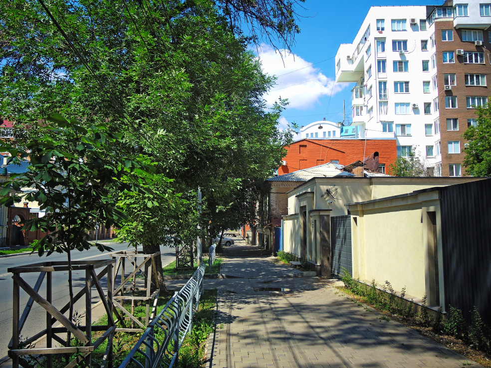 Недавно я показал один из памятников архитектуры Самары, который находится по адресу улица Ульяновская, 51. Как оказалось, это здание известно как дом Масловского и имеет несколько загадок в своей истории. В очередной подборке хочу показать дом, который находится напротив. И, как оказалось, имеет не менее загадочное настоящее. Дом 24 по улице Ульяновской привлёк моё внимание, потому что на карте на его стене указан некий арт-объект «Стрекоза». Ну, стрекоза, так стрекоза. Можно посмотреть. Вон она, действительно сидит. Не видно? Ну вон же. Для тех, кто всё равно не разглядел, совсем близко. И всё бы ничего. Стрекоза и стрекоза. Сидит и сидит. Однако, во-первых, хозяева заявили в связи с ней целый манифест, обозначив его на адресной табличке. А во-вторых, совсем непонятно, что же это за дом. Непосредственно объект находится на стене, скорее, какого-то подсобного помещения. То ли гаража, то ли дома охраны. Само же здание находится в глубине двора. По внешнему виду сказать, что именно там