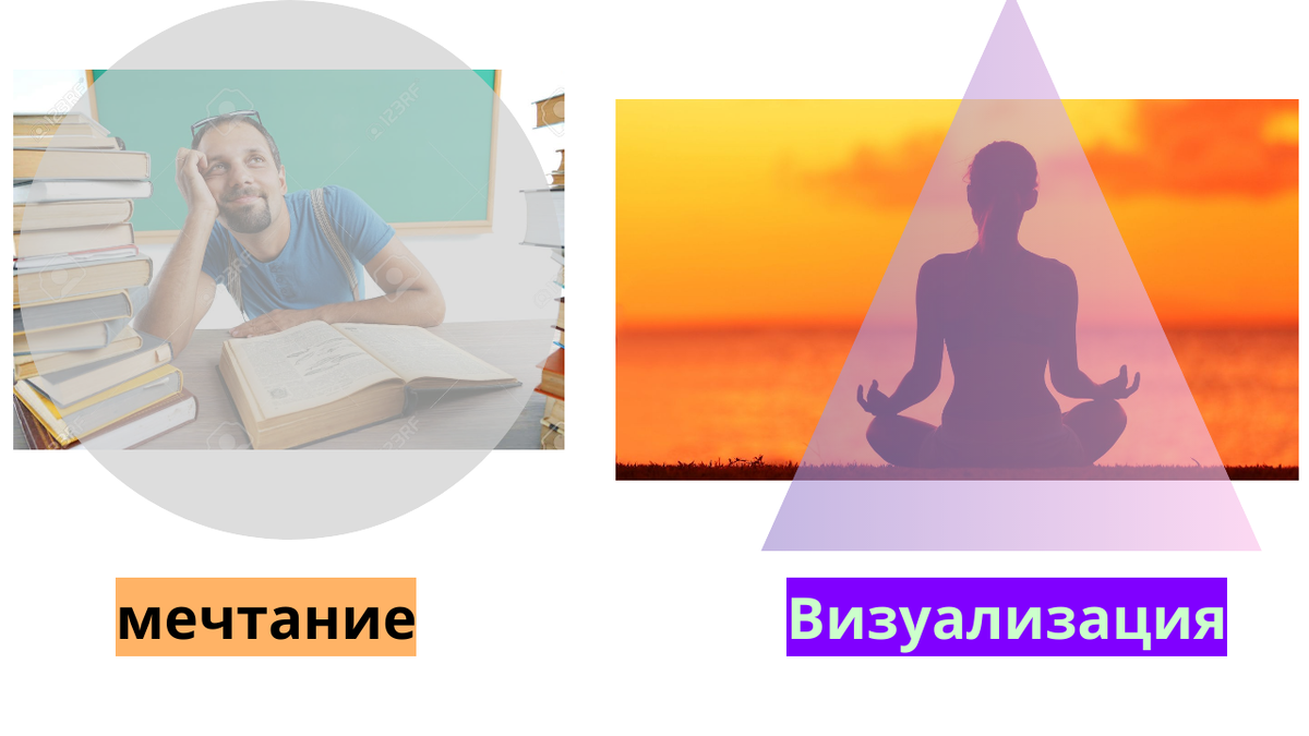 Визуализация - это представление желаемого как конкретной цели, в которую я верю, - верю по-настоящему, что это реально, достижимо, и готов над этим конкретно работать. Это контролируемая сознанием работа воображения, это намерение как бы заставить свое сознание поверить, что правда получу желаемое - не просто получу, а именно приду к нему самостоятельно своей верой и трудом над собой. Это связь, налаживание умственной связи между мечтой и реальностью, в то время как мечтание так и остаётся пустой, бесплодной мечтой без всякой связи с реальностью. Для такого налаживания нейронной связи требуется огромное усилие сознания. Тогда как для пустого мечтания никакого усилия не требуется, человеку просто становится приятно в моменте, как после дозы наркотика. Он забывает про реальность и просто бредит своим сладким, приятным бредом. А когда отрезвляется, то в его реальности ничего не изменилось и все начинается сначала. Серая невыносимая реальность у такого человека отделена огромной непроход
