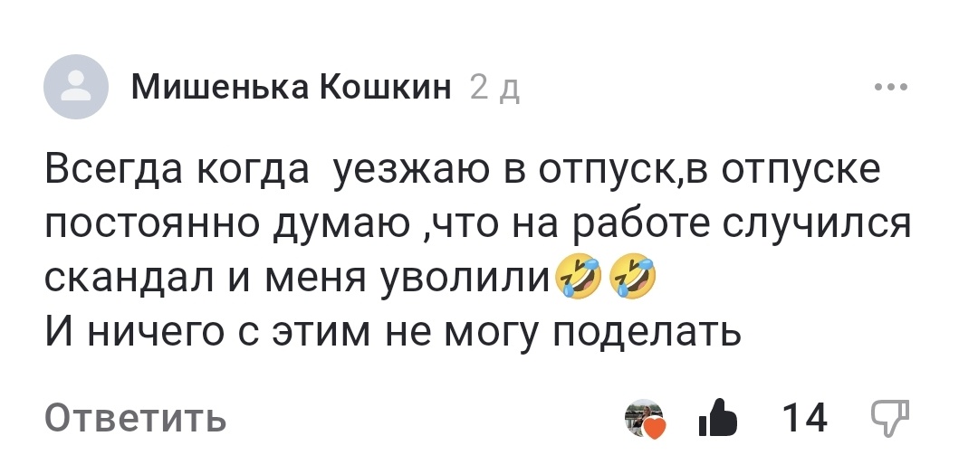 Недавно под статьёй прочла вот такой комментарий: Вы не поверите, но это про меня. Шёл 2012 год, я устроилась в компанию мечты. Есть такая фармкомпания "Sandoz", она делает множество известных вам лекарств. Попасть туда очень сложно. Я месяц проходила собеседования, меня проверяли по полной. И вот контракт подписан! Я в восторге! Но в начальниках у моего начальника был суровый мужик по имени Андрей. 😁 Я о нём писала, он сейчас в Likato целым направлением занимается. Андрей был суровым и требовательным. И вот когда я собралась в первый отпуск, мне пришлось у него отпрашиваться, мой непосредственный руководитель был в отпуске. И Андрей меня спросил: "А ты заслужила отпуск?" 😁 На отдых меня всё-таки отпустили. Я поехала в Тунис и всё время, что я там была, я думала, что сейчас приеду обратно, а Андрей меня уже уволил. 😁😁😁 Тревожность — она такая. И нет, меня не уволили. Я потом ещё три года там проработала, и даже год без Андрея. 😁 Поэтому вот с чем мне помогла справиться терап
