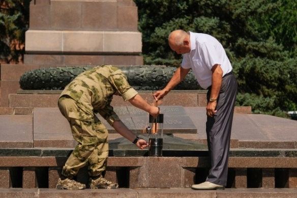 В областной столице состоялась торжественная церемония передачи на временное хранение в музей-панораму «Сталинградская битва» частицы Вечного огня.