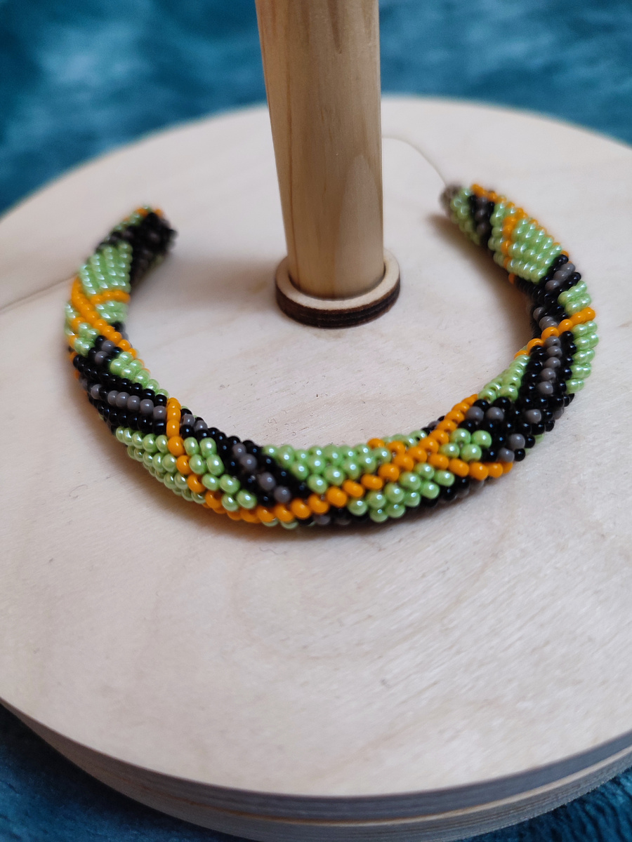 Мне кажется уже прошло пару лет, когда я решила попробовать вязать жгуты из бисера. Вязать я люблю, бисера у меня осталось достаточно много с былых времен. И вот что из этого получилось. Да, знаменитая клетка Burberry, оказалась моим фаворитом. Достаточно легко набиралась по схеме, достаточно нейтральна и подойдет для любого пола и возраста. Просто медовый, бисера хватило на двойную длину. Очень интересный бисер. Темное золото с квардратной сердцевиной. Приглушенный блеск граней не так вульгарен. Этот цвет у меня не подошел компаньоном не к одному из имевшихся и получился еще один толстячок. Мне кажется под новогодний наряд будет вполне уместен. Темный бисер в этом браслете под разными освещениями смотрится от полупрозрачного бордо с напылением до практически черного. Люблю "бензиновые" расцветки бисера, всегда выходит интересная игра переливов. Просто длинный жгут, вполне подойдет и на шее носить, но можно и в браслет закрутить. Но осталась одна маленькая проблемка... Я не