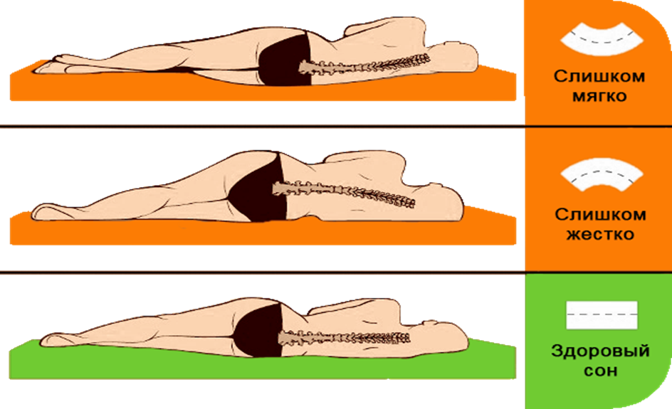 Подобные матрасы со средней жесткостью пользуются огромным спросом. Важно! Мягкие матрасы крайне противопоказаны людям: Не смущайтесь попробовать, прежде чем купить. Испытайте матрасы в магазине. Лягте и по переворачивайтесь на разных матрасах, пока не найдете тот, который удобен! Ищите хорошую поддержку: матрас должен иметь достаточно пружин, чтобы удобно поддерживать позвоночник. Как правило, чем больше пружин, тем лучше качество матраса. Упругие матрасы как правило, дают более широкую поддержку вашему позвоночнику, но не выбирайте слишком упругий матрас чтобы не просыпаться напряженным. Слишком упругий матрас, может оказать неприятное давление на плечи и бедра, ког