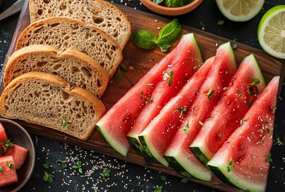 Однако при отсутствии вышеперечисленных болезней, а также проблем с ЖКТ и сердечной или почечной недостаточности употреблять арбуз с хлебом можно, только лучше выбирать цельнозерновой или ржаной из-за низкого гликемического индекса.