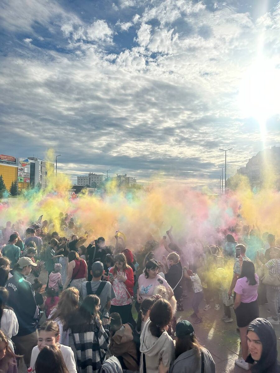 18.07.2024 в г.Тобольске прошел ошеломляющий "Фестиваль красок"! На площади перед ТЦ "Жемчужина Сибири" в 18:00 состоялся "праздник цвета". Любой житель и гость Тобольска мог посетить его совершенно свободно! Организаторами фестиваля был Арт-проект «Вместе Зажигаем», который постарался на славу! Играли зажигательные хиты, которые заставили всех участников праздника танцевать "до упаду". Также были установлены павильоны, в которых можно было приобрести краски на любой вкус и цвет. А по соседству можно было приобрести "дымящийся лимонад" различных цветов и вкусов. На площади работали художники аквагрима, и любой желающий мог украсить свое лицо красочными масками. Поразило количество участников данного мероприятия! Собрались дяди и тети, мальчики и девочки, дедушки и бабушки, малыши и взрослые. Люди танцевали, веселились, организовали "паровозик", общались и знакомились друг с другом. "Фестиваль красок" подарил людям массу ярких и восхитительных эмоций! И хотелось, чтобы такие мероприят