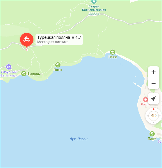 Показываю, что это за примечательное место, доступное всем для отдыха - Турецкая поляна под Севастополем в Крыму. Побывали там на выходных и отлично провели день дружеской компанией с шашлыками, пловом, возлияниями и купанием на пляже Таврида. Она расположена на территории реликтовой можжевеловой рощи и от этого там такой замечательный воздух! Под скалой Куш-кая и с прекрасным видом на Ласпинскую бухту. Своё название Турецкая поляна получила из-за того, что в этих местах располагался лагерь пленных турок, которые строили для нас старую батилиманскую дорогу. От той дороги уже ничего не осталось и вместо неё нормальная асфальтированная трасса. На карте видно месторасположение Турецкой поляны - Если ехать по Ялтинской трассе, то надо свернуть на Батилиман и далее вы не пропустите это место, оно расположено прямо у дороги. Специально оборудованная территория для пикников, шашлыка и пр. Здесь расположены крытые беседки, качели, мангалы. Немного в стороне есть биотуалеты и мусорные баки. О