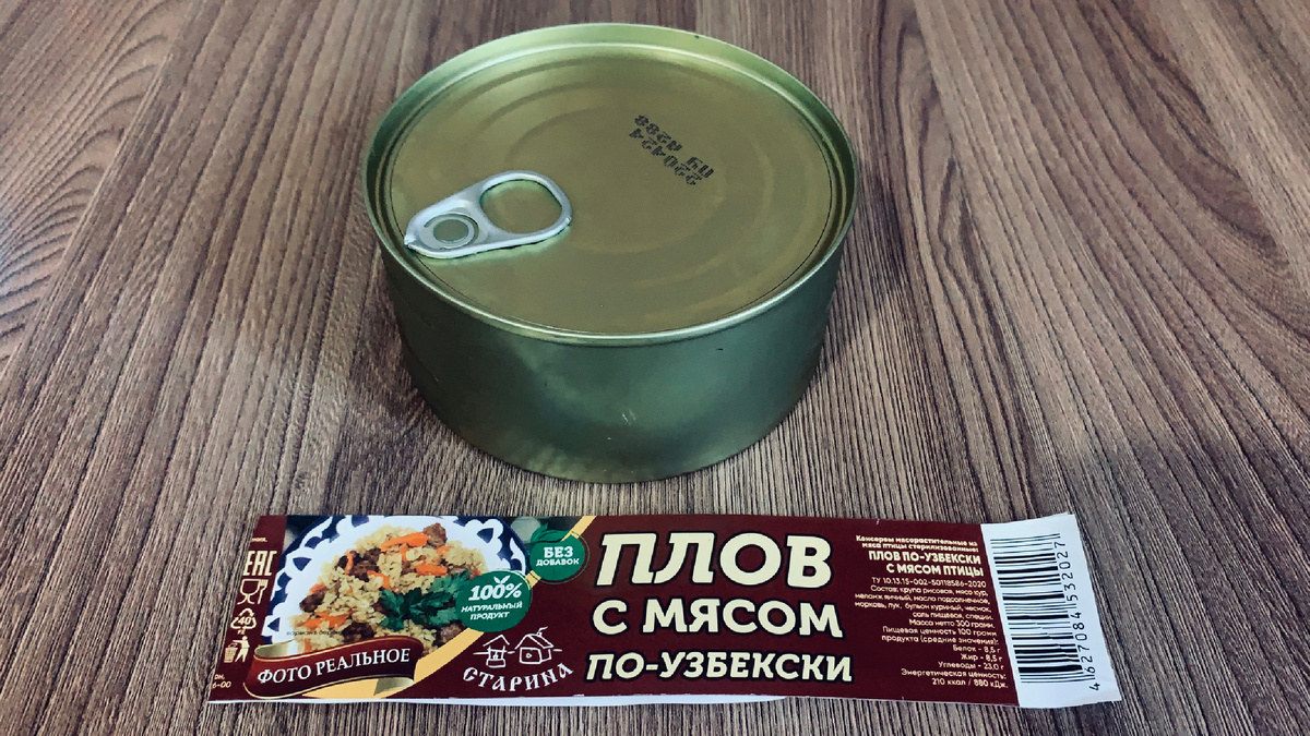 Сегодня мы разберем одну из позиций на полках всеми нами любимого магазина Fix price. И сегодня гость нашей программы это консервированный плов с мясом по узбекски . Цена данного товара составляет 79 рублей за 300 грамм готовой продукции ! Давайте заглянем , что же у нас содержится внутри . На первый взгляд выглядит не плохо , сверху нас встречают кусочки мяса ( конечно же соевого ) и рис с морковью ! После того как мы выложили все содержимое банки в тарелку , картина изменилась , наш плов стал выглядеть более аппетитно , но казалось , что он немножечко суховат . После разогревания данной продукции , рис стал рассыпчатый и в запахе и вкусе стали проявлять нотки специй , специи все добавлены в норму , по вкусу рис даже очень не плох , а вот к этим непонятным шарикам «мясным» есть небольшие вопросники , но если разобраться сколько это стоит то вполне себе качественный продукт ! Как у нас говориться кушать можно! После того как я попробовал еще несколько рас данный плов то сделал выв