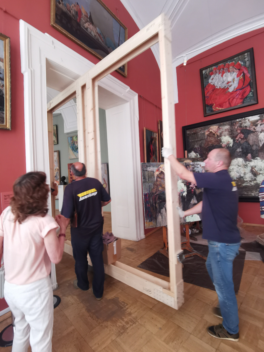 Большая выставка в большом музее, как правило, рождается медленно и занудно. Начинаясь с длительной подготовительной работы: согласования-утверждения-обсуждения. Все вопросы: от названия проекта до состава работ проходят длиннющий путь, в процессе которого можно утратить и радость музейного творчества, и смысл выставочного созидания. Но это крайние точки, лишь различимые, но недостижимые для тертых музейщиков, намозоливших себе профессиональные органы и умеющих бежать марафоны ради огромного события - выставки. Затем, от бумажного делопроизводства, утверждения всего и вся, согласования со смежными организациями и многочисленными сторонами процесса, переходят к сбору работ. Порой этот этап наступает спустя год или даже три: большая выставка - большая дистанция. Одновременно готовится дизайнерское решение для интерьера выставки и для всяких плакатов-буклетов. В залах будущей экспозиции начинается строительство. Самый начальный этап оформления пространства выставки выглядит как любая стр