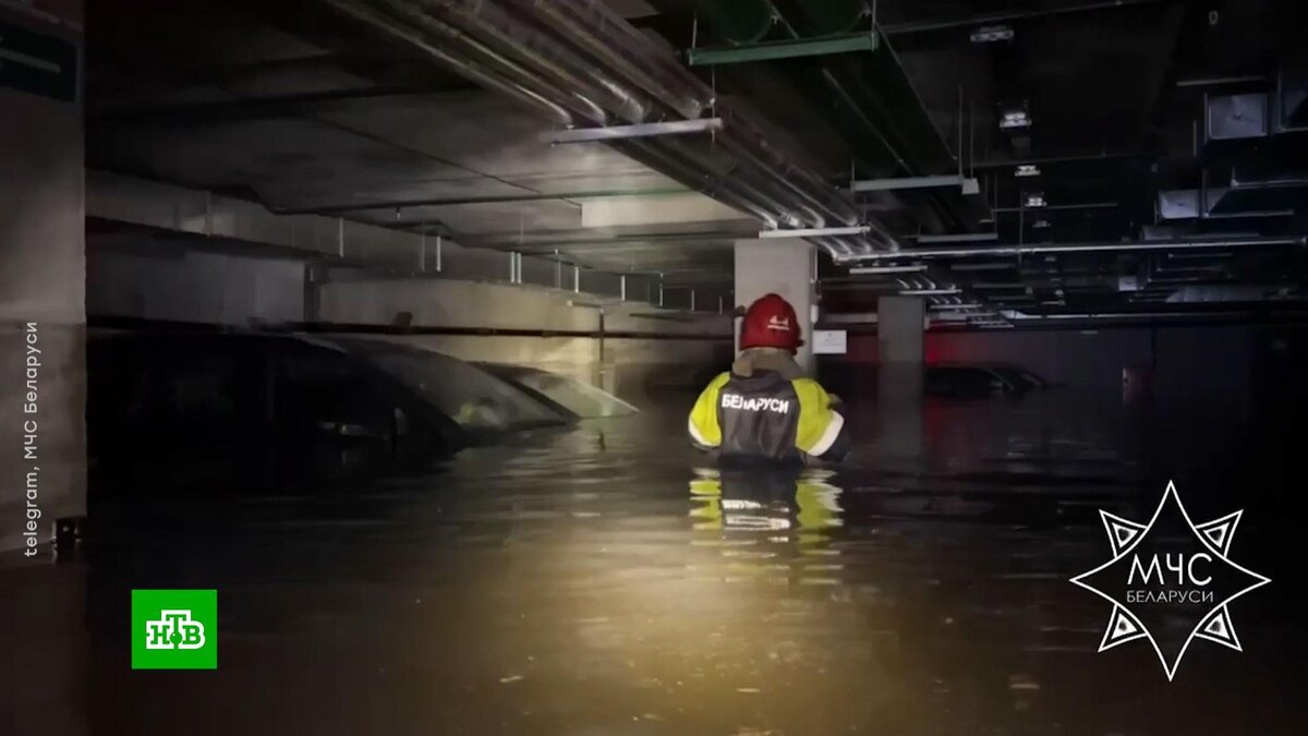 [ Смотреть видео на сайте НТВ ] В столице Белоруссии ликвидируют последствия рекордного ливня. Потоки воды залили улицы, в пяти районах Минска останавливалось движение транспорта. В четверг на столицу Белоруссии обрушился самый мощный ливень за всю историю метеонаблюдений. Ливень шел около часа, но успел парализовать движение и вызвать 10-балльные пробки. Затопленными оказались улицы в пяти районах города, также из-за потоков воды пришлось закрыть станцию «Парк Челюскинцев». Досталось и автомобилям на подземной парковке в центральной части города, где под водой оказалось более десятка машин. На какое-то время из-за ливня погас и Вечный огонь на площади Победы. Повалены деревья и рекламные стенды. Сведений о пострадавших не поступало. [ Смотреть видео на сайте НТВ ]