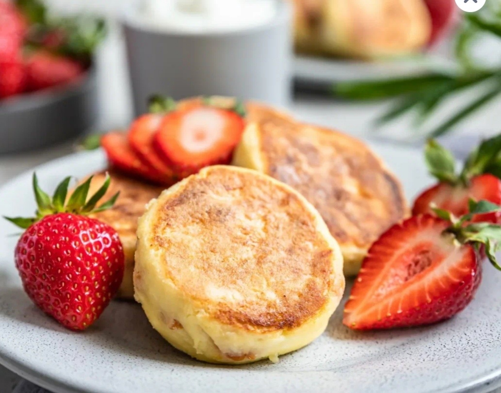 1. Творог растереть с сахаром и яйцами в пышную массу. Добавить соду. Перемешать. 2. Добавить в творожную массу, просеянную муку, перемешать. 3. Клубнику нарезать кубиками и ввести аккуратно в тесто. 4. Рабочую поверхность присыпать мукой, выложить тесто (оно сильно липнет к рукам). С помощью муки сформировать "колбаску", нарезать ее на кусочки, из каждого кусочка сформировать сырники. 5. На сковороде разогреть масло, обжаривать сырники с двух сторон на среднем огне до готовности. 6. Выкладывать сырники на тарелку, застеленную бумажным полотенцем, чтобы удалить лишний жир. 7. Подавать сырники, посыпав сахарной пудрой с клубникой или сметаной. Приятного аппетита!