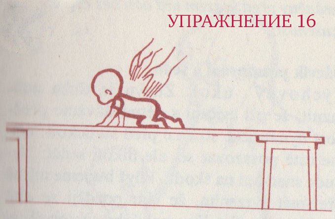 Методическое пояснение: упражнения, совершенствующие ползание, перелезание, вылезание, слезание и т. д. иногда связаны с определённым риском для ребёнка. Иногда невозможно обеспечить абсолютную чистоту; стараемся держать ребёнка в наиболее чистых условиях и лишний раз не позволяем ему ползать в не очень чистом пространстве. Ребёнок может пораниться: внимательно осматриваем предметы, по которым ползают дети, нет ли там трещин, выступов, острых углов и т. д. Пространство, где находится ребёнок, должно быть освобождено от любых опасных предметов, которые могут его поранить; скатерти, покрывала и т. д. сами по себе не опасны, но ребёнок может сбросить на себя посуду, стоящую на них. С другой стороны, ребёнок должен получать положительный и отрицательный опыт и ввиду этого не страшно, если он иногда слегка удариться или причинит себе другую небольшую боль. Дети с определёнными двигательными навыками, положительным и отрицательным опытом, гораздо лучше защищены от травм, чем дети без тренировки и опыта.
