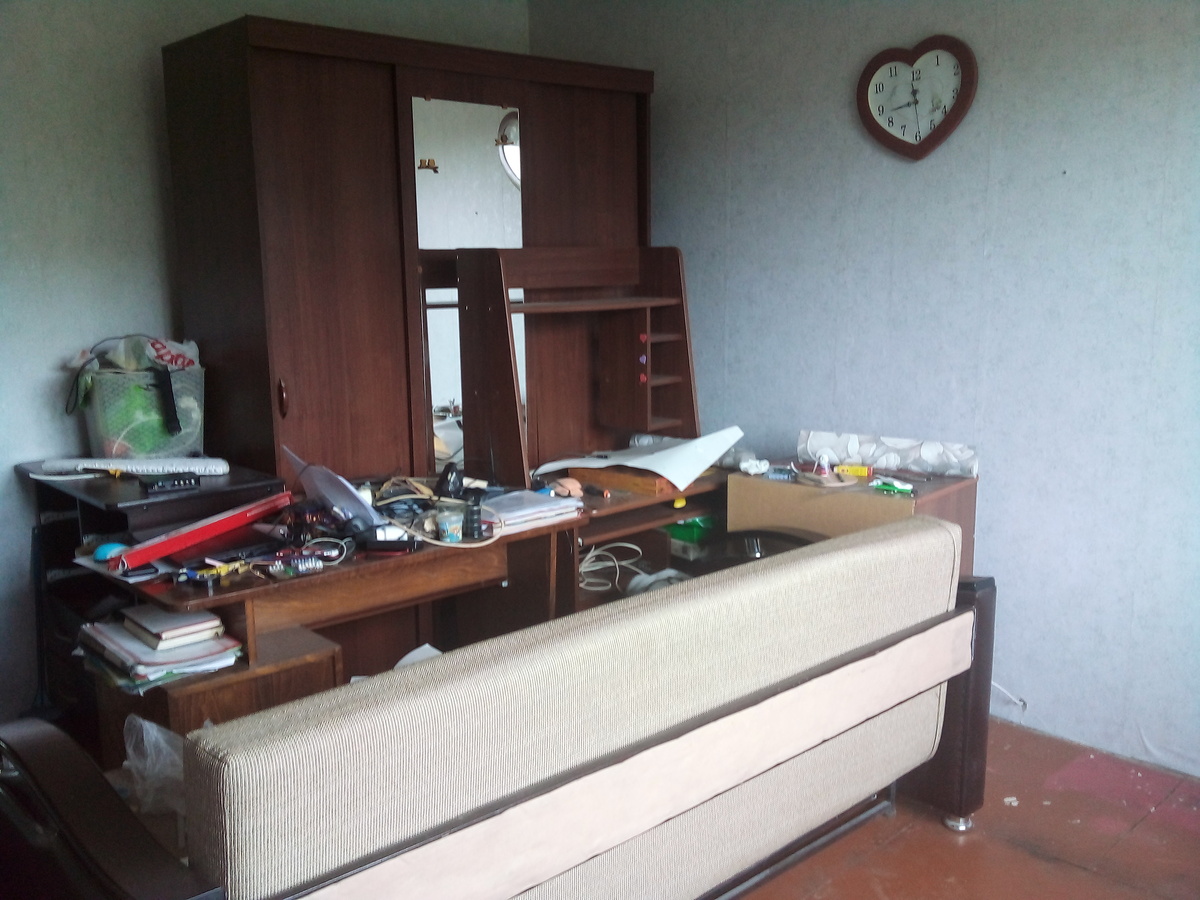 А дальше - чудо. Линолеум по все комнате, а вся мебель на нём. Нет у меня возможности делать такие работы в пустом помещении. Плюс где-то надо ещё жить. Когда живёшь в ремонте, стремишься крупные работы сделать побыстрее. Пусть потом до фига уборки, но главное дело сделано.