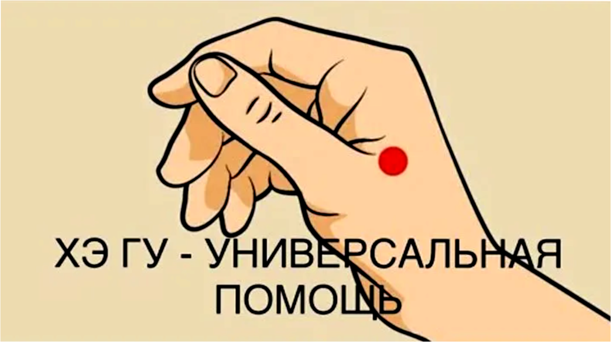 В одной своей статье я давал точку на ноге «от ста болезней». Это Цзу-сан-ли. Есть мощная точка от «ста болезней» и на руке. Это точка Хэ-гу. Название точки переводится как «закрытое ущелье». Это место между двумя пальцами похоже на ущелье, смысл такой. Точка довольно универсальная. Она находится на меридиане толстого кишечника и поэтому, как и сам толстый кишечник, оказывает влияние на весь организм. Показывает высокую эффективность при устранении болей в верхней части тела: при головной боли, при зубной боли, а также при болях в животе, плечах, невритах и невралгиях с локализацией в верхних конечностях. Точка Хэ Гу позволяет ускорить выздоровление при простудных заболеваниях, особенно в сочетании с точкой Цзу Сан Ли, т.к. обе эти точки повышают иммунитет организма. Если при первых симптомах простуды (при повышении температуры) начать работать с точкой Хэ Гу, то общая продолжительность болезни значительно сократится. Применяется при расстройствах желудочно-кишечного тракта: при изжог