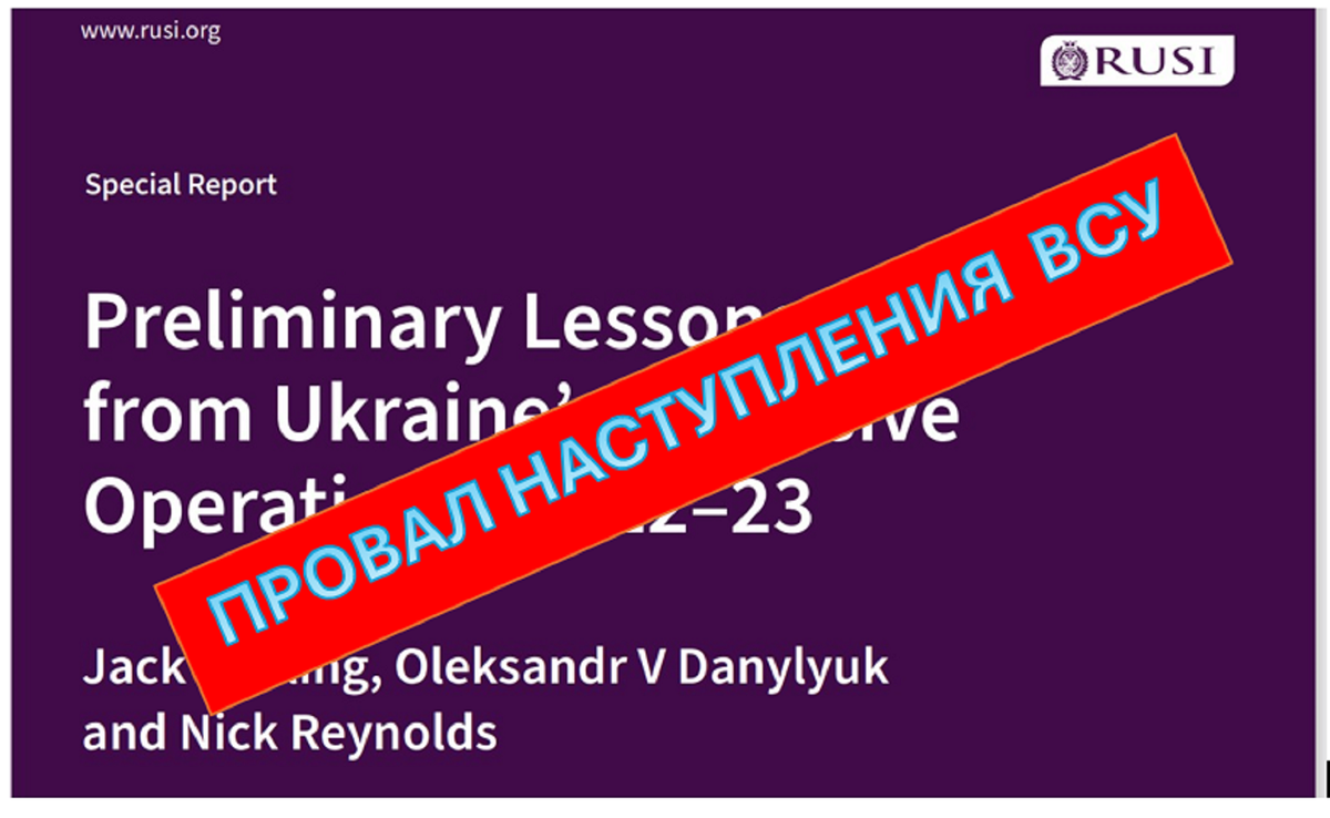 Авторитетный британский аналитический центр по проблемам безопасности RUSI* опубликовал 48-страничный доклад «Предварительные уроки украинских наступательных операций 2022-2023 годов», в котором названы основные причины неудачного контрнаступления Вооруженных сил Украины 2023 года и высказываются сомнения относительно нового наступления в ближайшем будущем.