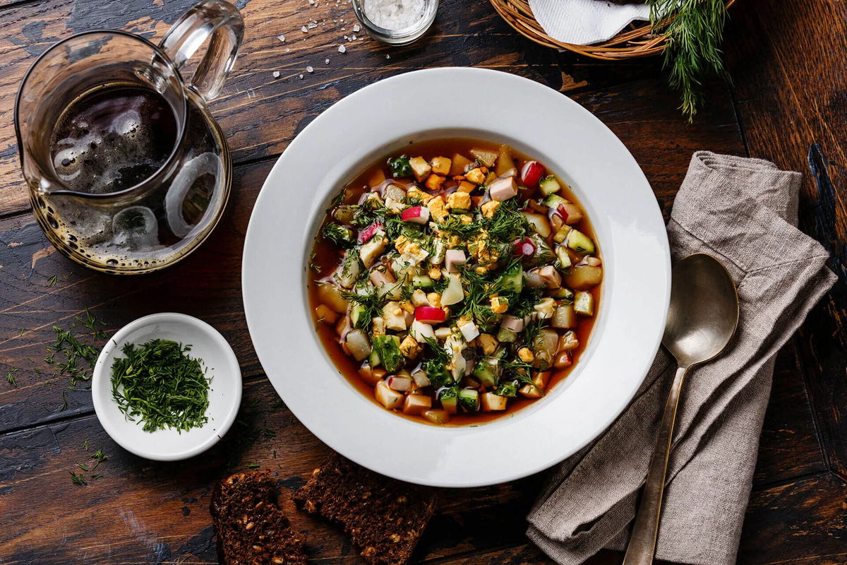 Летний индекс окрошки с мая снизился на 12%, но и оказался выше уровня прошлого года на 17%, достигнув 685 руб. по рецепту на семью. Сравнение за 1 июня – 10 июля 2024/2023 гг., средний чек, РФ: Средний чек покупки такого набора товаров для квасной окрошки в июне-июле составляет 862 руб., на 22% выше, чем в прошлом году, и на 12% ниже, чем в мае. При выборе кефира вместо кваса – средний чек на уровне 850 руб., на 21% выше, чем в прошлом году, и на 11% ниже, чем в мае. Если рассматривать расходы на набор ингредиентов для квасной окрошки исходя из традиционного «советского» рецепта (расчет на четыре порции супа): редис (300 г), картофель (400 г), яйца (5 штук), огурцы (300 г), колбаса вареная (300 г), сметана (100 г), квас (1 л), лук и укроп по одному пучку каждого), — средний размер трат на окрошку из кваса (индекс окрошки) составляет 685 руб. Это на 17% выше, чем в прошлом году. При выборе кефира вместо кваса – средний размер трат на окрошку из кваса (индекс окрошки) на уровне 673 руб.