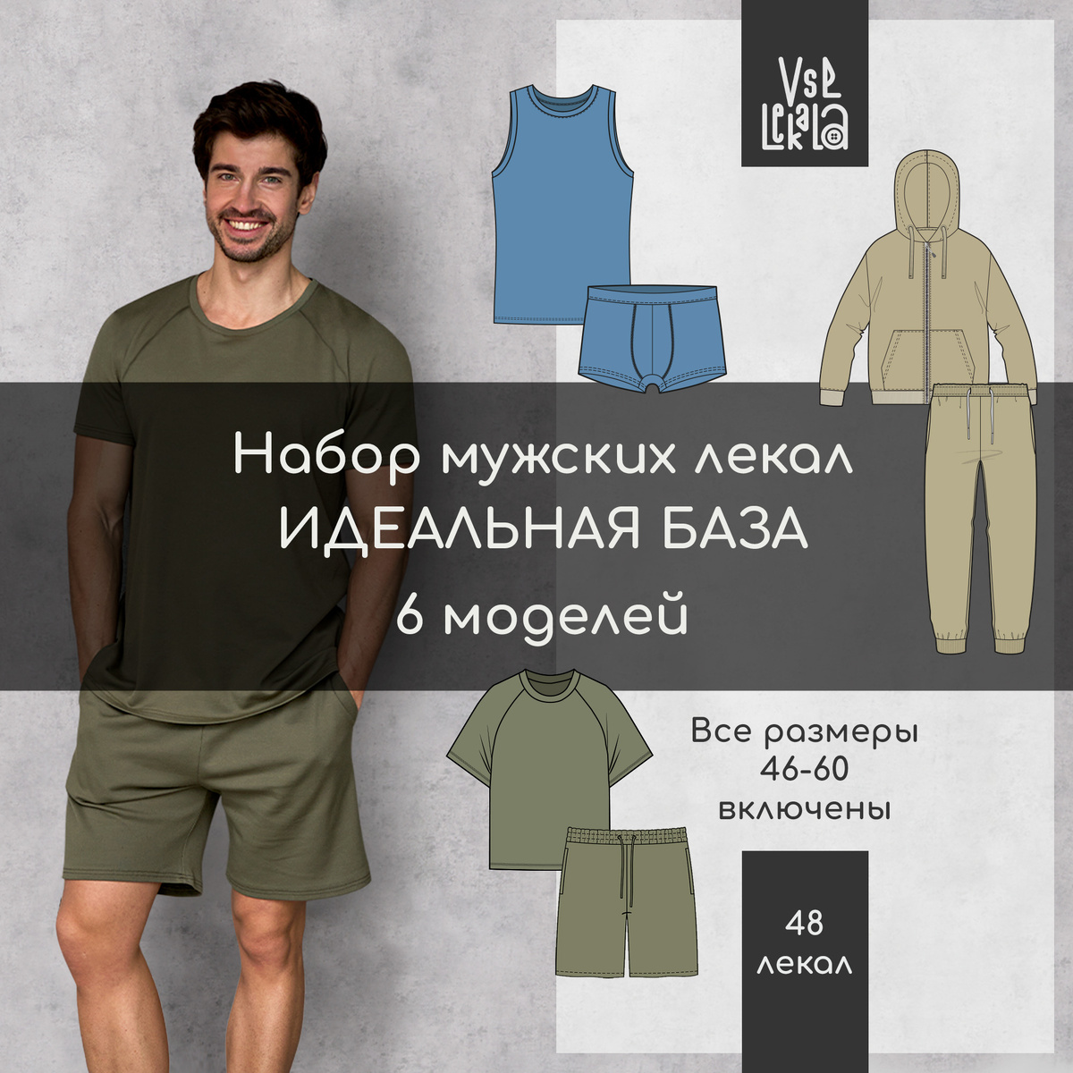 Набор лекал с идеальной мужской базой, состоящий из 6 моделей, на размеры от 46 до 60. Ищите набор на нашем сайте vselecaka.com Всего в наборе 48 лекал, которые помогут создавать стильную и удобную мужскую одежду. Работайте с клиентами любых комплекций. Широкий размерный ряд обеспечит идеальную посадку. В набор входят: Выкройки футболки Россано Выкройки шорт Йорк Выкройки толстовки Бруклин Выкройки брюк Мельбурн Выкройки майки Нант Выкройки боксеров Марсель
