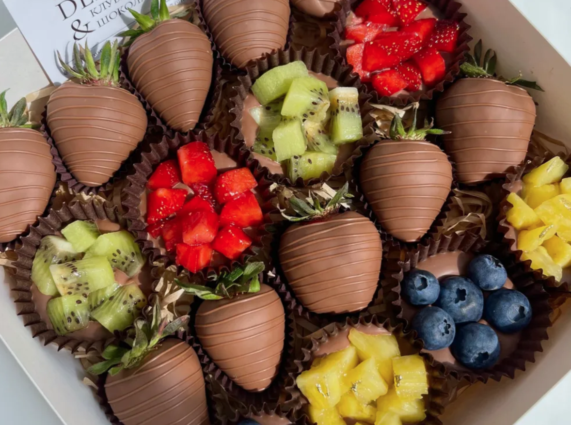 Каждый, несомненно, будет рад качественному сладкому и фруктовому подарку, созданному с душой, и с удовольствием разделит с вами эти моменты за чашечкой чая или, что уж, скрывать холодного бокала шампанского в такую жару! Свежая клубника в молочном бельгийском шоколаде и шоколадные медианты со свежими фруктами: киви, голубика, ананас – станут идеальным дополнением к приятной беседе, бокалу игристого и любимому плейлисту. Чем более «адресным», личным получится ваш подарок, тем большее впечатление он произведет. Разнообразие фруктов в шоколаде не позволит ошибиться – каждый найдет в этом наборе свой вкус. Коробочка с прозрачной крышкой (20х20 см) перевязана атласной лентой и упакована в транспортировочный пакет. Отправляйтесь в гастрономическое путешествие, не выходя из дома под аккомпанемент любимого напитка вместе с нами - https://taplink.cc/delish.krd. Добавьте еще один день в копилку ваших совместных счастливых воспоминаний с близкими! #ягодывшоколаде #клубникавшоколаде #малинавшок
