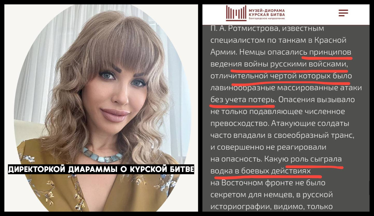 Поговорим о курьёзах истории и особенностях музейного маркетинга, что ли. Представьте себе картину: сидите вы в уютном кресле, листаете ленту новостей, и вдруг наткнулись на заметку о Белгородском музее, где директором значится дама с двумя... красивыми пельмешками. Да, не абы кто, а сама директорка диорамы о Курской битве. Тут-то и начинается самое интересное. Начнём с того, что история переписывается не один раз и не двумя руками. Вот и директорка музея решила освежить память посетителей, добавив перца и соли в давно известные события. Не буду скрывать, что сарказм здесь уместен как никогда. Итак, представьте себе: русские солдаты, слегка "поддав" водки, зарядившись психотропными препаратами, как по волшебству, превращаются в лавинообразные атаки без учёта потерь. Атмосфера накаляется, и уже виднеется картина кровавой битвы, где каждый солдат как будто в трансе, без страха и упрёка идёт на врага. Вопрос о роли водки в боевых действиях на Восточном фронте вовсе не нов, но наша героиня
