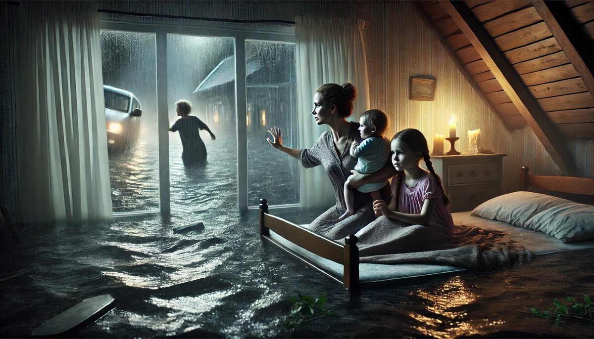 Затем, случилось наводнение у нас в городе. Очень страшное. Ночью, без электричества. Вода шла волной. Когда проснулась, вода была уже в доме. Проснись на 20 минут страшно представить, что было бы с младшей дочкой, которая спала на низкой кроватке. За 30 минут вода во дворе достигла уровня 2,5 метров. Машины плавали во дворе, стучали в окна какие-то предметы. Ситуацию ухудшало отсутствие электричества, спасала церковная свечка, которую я оставила на столе на блюдце и вода до неё не дошла. Спасло то, что в воде отыскали лестницу на ощупь, через окна успели забраться на чердак. Молились, слушая в кромешной тьме крики людей и вой собак. 5 часов просидели, затем приехали спасатели увезли дочку к родителям. Успокаивала ребенка как могла. Старшая, слава Богу, была в другом городе. Утром проезжая по улице, видела людей, которые не смогли спастись - прямо на обочине. Когда попали в дом, там мясорубка из грязи и того что было мебелью и вещами.