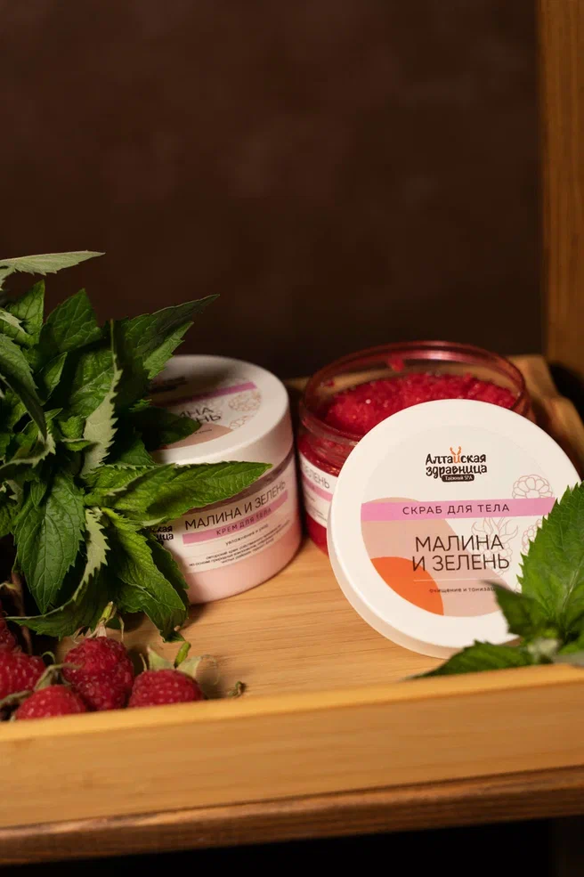 - Состав и преимущества: Этот скраб обогащен экстрактом малины и зелеными компонентами, которые не только очищают, но и питают кожу. Малина богата витаминами и антиоксидантами, что способствует обновлению кожи.