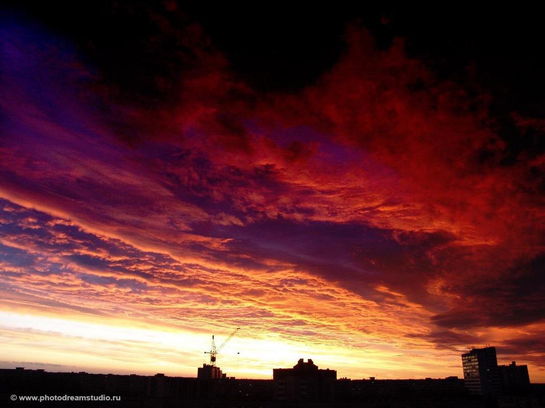 Желаю всем здравствовать! Это фото я снял практически "не отходя от кассы". То есть прямо из окна своей квартиры. Такие вот в августе у нас бывают закаты. Закатистые. Вот как я попытался описать эту картинку Искусственному интеллекту: в самом низу кадра черный силуэт современного города на фоне заката. виден строительный кран. почти всю площадь кадра занимает небо. внизу светло-оранжевое, затем красное, постепенно переходи в багровое и в самом верху почти чёрное. по всему нему, кроме самой нижней части тяжёлые драматичные облака и даже тучи И вот как он понял меня. Или сделал вид, что понял. Вообще, не знаю, как вы, но я - доволен! Прям образчик живописи. Индустриальной.