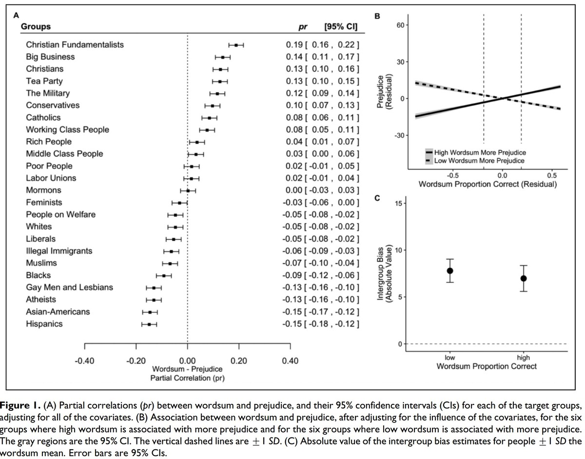 Но влияет на то, кого мы не любим из-за собственной предвзятости Раскол и поляризация общества в ряде стран нарастают. Pew Research Center назвал это «Эрой поляризации». И мне видится эта тема чрезвычайно важной. О чем я пишу и рассказываю с момента создания своего канала 7 лет назад [1, 2]. На фоне экстраординарных событий, типа субботнего покушения на Д. Трампа в США (и сопоставимых по потенциалу возгонки общества эксцессов в других странах) раскол в любой момент способен перейти в лавинообразную фазу. Что делает чрезвычайно актуальным вопрос о возможности и путях хоть какого-то снижения накала противостояния в обществе. Как показывают исследования, значительную роль в ксенофобии (страх и неприязнь по отношению к любым «другим» людям, которые не похожи на нас), направленной на представителей других социальных групп (политических, религиозных, этнических, активистских и т.д.) играют групповые предубеждения. Поэтому столь важно понимать, каково влияние уровня когнитивных способностей л