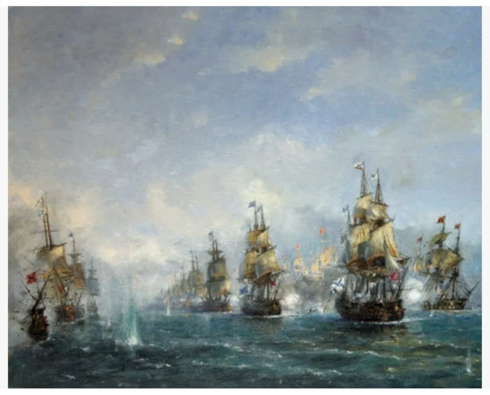 ΠΎΠ΄Π΅ Π½Π΅Π³ΠΎ ΡΡΡΡΠΊΠΈΠ΅ ΠΊΠΎΡΠ°Π±Π»ΠΈ ΠΏΠΎΠ΄ Π½Π°ΡΠ°Π»ΠΎΠΌ ΠΊΠΎΠ½ΡΡ-Π°Π΄ΠΌΠΈΡΠ°Π»Π° Π€ΡΠ΄ΠΎΡΠ° Π€ΡΠ΄ΠΎΡΠΎΠ²ΠΈΡΠ° Π£ΡΠ°ΠΊΠΎΠ²Π° Π½Π°Π½Π΅ΡΠ»ΠΈ ΠΏΠΎΡΠ°ΠΆΠ΅Π½ΠΈΠ΅ ΡΡΡΠ΅ΡΠΊΠΈΠΌ ΠΠΎΠ΅Π½Π½ΠΎ-ΠΌΠΎΡΡΠΊΠΈΠΌ ΡΠΈΠ»Π°ΠΌ ΠΈ ΡΠΎΡΠ²Π°Π»ΠΈ Π²ΡΡΠ°Π΄ΠΊΡ ΡΡΡΠ΅ΡΠΊΠΎΠ³ΠΎ Π΄Π΅ΡΠ°Π½ΡΠ° Π½Π° ΠΡΡΠΌΡΠΊΠΈΠΉ ΠΏΠΎΠ»ΡΠΎΡΡΡΠΎΠ². ΠΡΠΎΡ ΠΌΠΎΡΡΠΊΠΎΠΉ Π±ΠΎΠΉ ΡΠ²Π»ΡΠ΅ΡΡΡ ΠΎΠ΄Π½ΠΈΠΌ ΠΈΠ· ΠΏΡΠΈΠΌΠ΅ΡΠΎΠ² ΠΈΡΠΏΠΎΠ»ΡΠ·ΠΎΠ²Π°Π½ΠΈΡ Π½ΠΎΠ²ΠΎΠΉ ΠΌΠ°Π½ΡΠ²ΡΠ΅Π½Π½ΠΎΠΉ ΡΠ°ΠΊΡΠΈΠΊΠΈ, ΠΎΡΠ½ΠΎΠ²Ρ ΠΊΠΎΡΠΎΡΠΎΠΉ Π±ΡΠ»ΠΈ Π·Π°Π»ΠΎΠΆΠ΅Π½Ρ ΡΡΡΡΠΊΠΈΠΌ ΡΠ»ΠΎΡΠΎΠ²ΠΎΠ΄ΡΠ΅ΠΌ Π€ΡΠ΄ΠΎΡΠΎΠΌ Π€ΡΠ΄ΠΎΡΠΎΠ²ΠΈΡΠ΅ΠΌ Π£ΡΠ°ΠΊΠΎΠ²ΡΠΌ Π²ΠΎ 2-ΠΉ ΠΏΠΎΠ»ΠΎΠ²ΠΈΠ½Π΅ 18 ΡΡΠΎΠ»Π΅ΡΠΈΡ. πΉ ΠΠ°ΡΡΡΡΡΡ ΠΠ΅ΡΡΠΈ | ΠΠΎΠ΄ΠΏΠΈΡΠ°ΡΡΡΡ