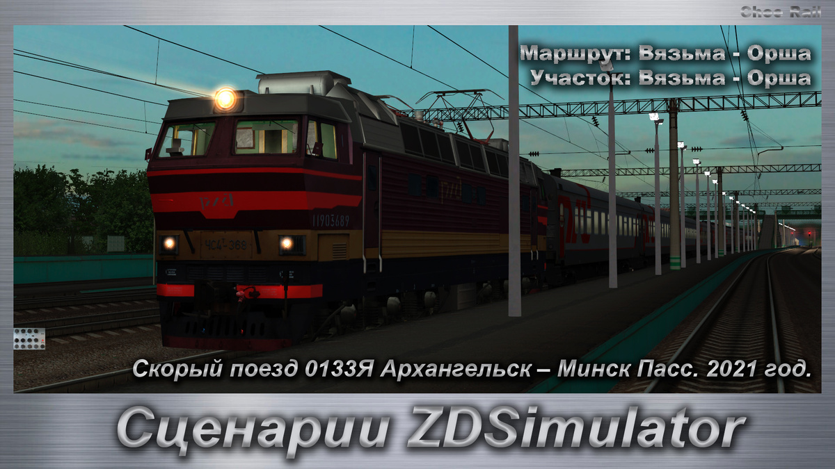 Сценарии ZDSimulator Скорый поезд 0133Я Архангельск – Минск Пасс. 2021 год.