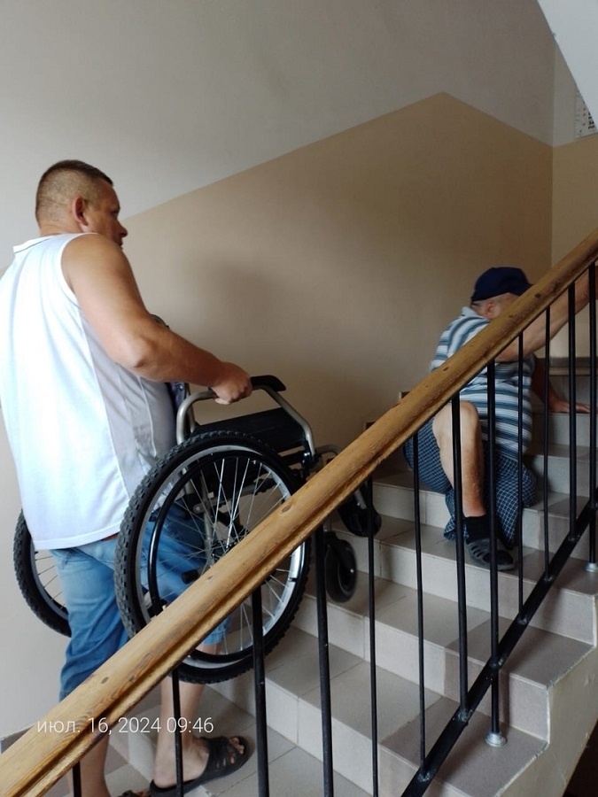 В соцсетях куряне обсуждают историю, которая произошла в железнодорожной поликлинике во вторник, 16 июля. Мужчина, передвигающийся в инвалидной коляске, чтобы попасть на прием к хирургу, был вынужден ползти по лестнице на третий этаж. На фото, которое разместили в соцсетях, видно, что мужчина без ноги, на вид которому около 60 лет, ползет по ступенькам, вслед за ним несут инвалидную коляску. В регистратуре пациенту пояснили, что лифт не работает, так как лифтер находится в отпуске. Кабинет хирурга — на третьем этаже. Чтобы попасть на прием, пациенту пришлось подниматься по лестнице ползком. Иван ПРОХОРОВ, фото из группы "Подслушано Курск" Постоянный адрес новости на сайте «Друг для друга» ~ https://dddkursk.ru/lenta/2024/07/19/110374/. Новости Курска за ~ 19 июля ~ июль 2024 года.