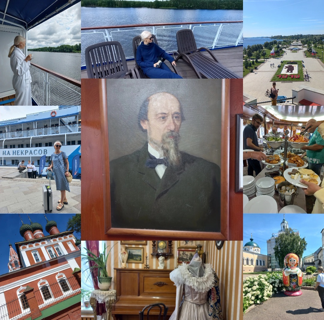 Остановилась я в прошлый раз на круизном теплоходе Николай Некрасов . Путешествие было коротким , всего четыре полных дня , осталось даже легкое чувство голода 🫠 , когда пришло время выходить с чемоданами в Казани . Чего нельзя сказать о питании на борту . Здесь оставаться голодным или соблюдать диету было невозможно . Завтраки были в формате шведского стола , щедрого и обильного , ну и конечно же вкусного . И с шампанским на входе . Обеды и ужины проходили по меню , которое составлялось накануне . Из трех или четырех вариантов . На столе лежали списки -анкеты , оставалось только выбрать и поставить галочки . Обед и ужин состояли из салата , причем основательного и сытного , порции супа , второго мясного или рыбного блюда с гарниром , ну и десерта в виде пирожного , мороженого или мусса из фруктов и сливок .Ну и напитки , в том числе алко на выбор .
