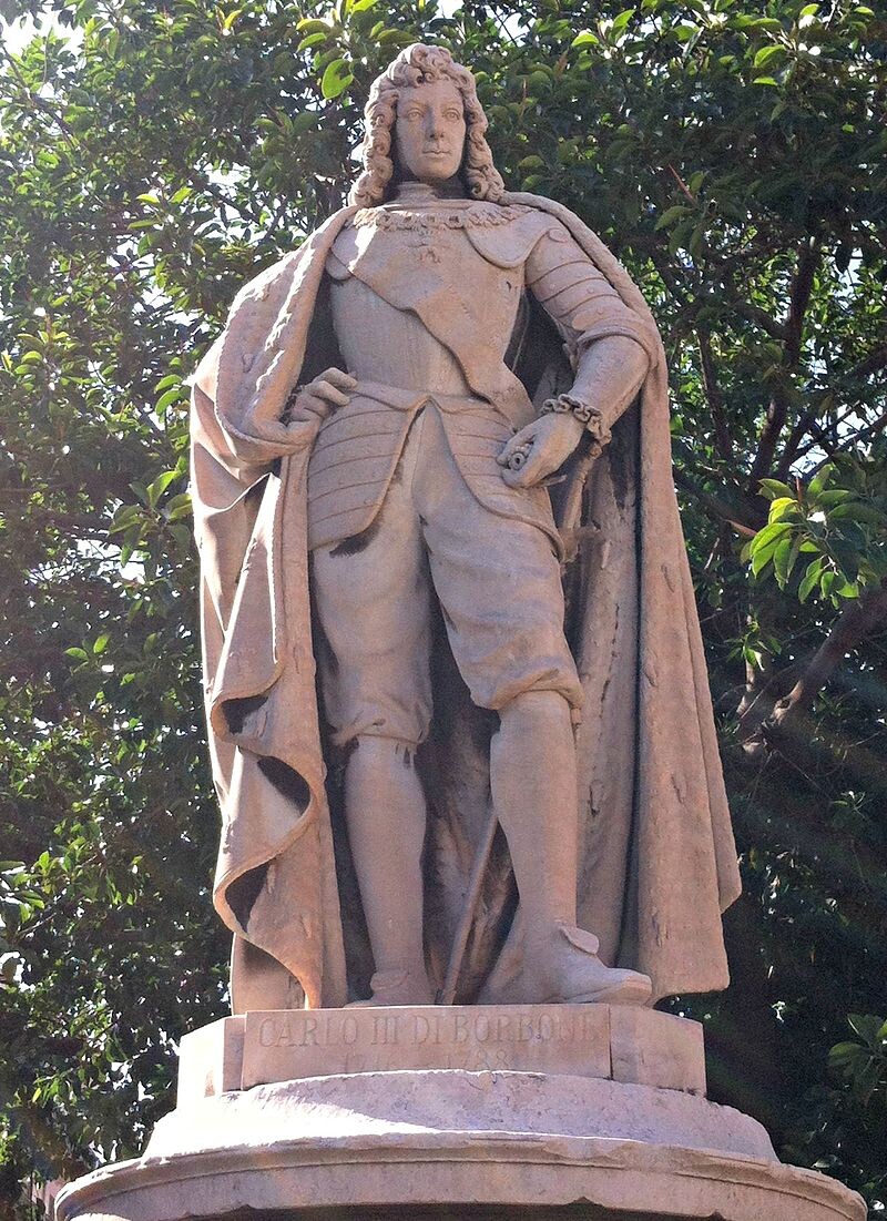 Вот как раз это правило и сыграет крайне злую шутку с Неаполитанскими Бурбонами, тогда, когда они станут уже изгнанниками. Слегка странным образом был решен вариант изначально не предусмотренный, как таковой, но логически вытекающий из вышеуказанных правил – ведь не только король Испании может оказаться первым в очереди на Неаполь, но и наоборот – первый претендент на корону Неаполя, может оказаться первым в очереди и на корону Испании, и внезапно не только по праву рождения, но еще и по праву … жены. Последнего нюанса, в XVIII веке, правда, предусмотреть было пока никак невозможно, но как раз в XIX правила наследования уже в Испании кардинально изменились.