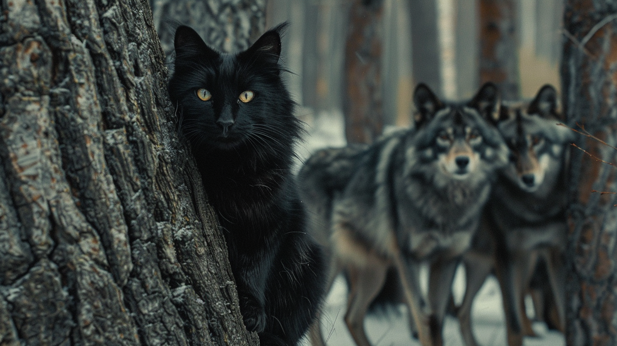 Глупый кот забрался к волкам в Московском зоопарке: Пушистый притих, опасаясь привлечь внимание хищников