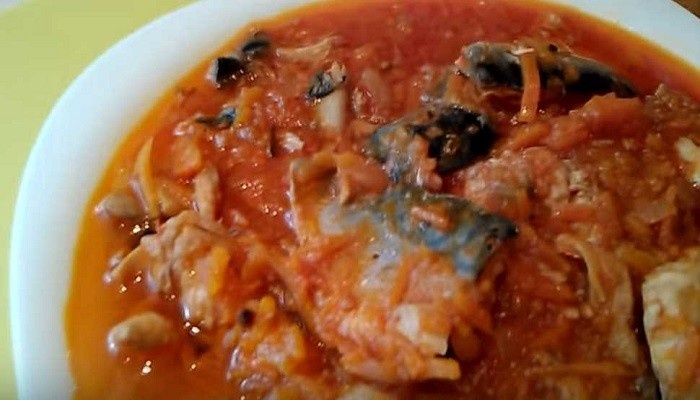 Любите ли вы скумбрию? Наверняка, да! Ведь она очень вкусная, полезная и сочная. Готовить ее одно удовольствие, а есть – двойное! Если вы также любите консервы из нее, то предлагаю к прочтению нашу сегодняшнюю статью. Очень простой рецепт рыбного салата на зиму. 1.Первым делом, поставьте на стерилизацию банки и крышки. А тем временем, можно приступить к подготовке продуктов для салата. 2.Полукольцами средней толщины нарезать очищенный лук. Через мясорубку пропустить помидоры. Морковку почистить и натереть корейской теркой. 3.Рыбу очистить на филе. Удалить голову, плавники, хвост и внутренности. Разделить на 2 части вдоль позвоночника. В результате получаются две половинки – одна с хребтом, а другая без. Удалить сам позвоночник со второй части и все мелкие кости. 4.В результате у вас должно остаться только рыбное филе на коже, без костей, плавников и прочих ненужностей. Каждую половинку нарезать на 3-5 частей, в зависимости от размера. 5.Все овощи переместить в кастрюлю. Сюда же добавит