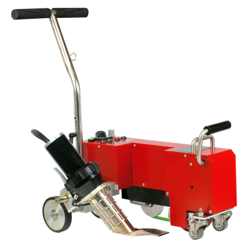 Благодаря прочностным характеристикам, простоте монтажа, малому весу и долговечности полимерные кровельные покрытия на данный момент наиболее популярны при монтаже кровли. Полимерные мембраны могут устанавливаться как на плоские, так и на покатые крыши. Характеристики такой кровли по энергосбережению и гидроизоляции значительно выше большинства аналогов, а срок службы до 60 лет вполне компенсирует несколько более высокую стоимость материала. Несмотря на лучшие показатели, монтаж кровли относительно прост при условии наличия необходимого оборудования и достаточной квалификации монтажников. Кровельные мембраны данного типа свариваются посредством горячего воздуха, превращаясь в монолитную конструкцию, гарантирующую сохранение тепла и изоляцию от воды. 1. Фены и термофены, работающие в ручном режиме. Данное оборудование скорее предназначено для локальных ремонтов, а также сварки в труднодоступных местах. Но оборудование данного типа снабжается различными насадками и может выполнять дополн
