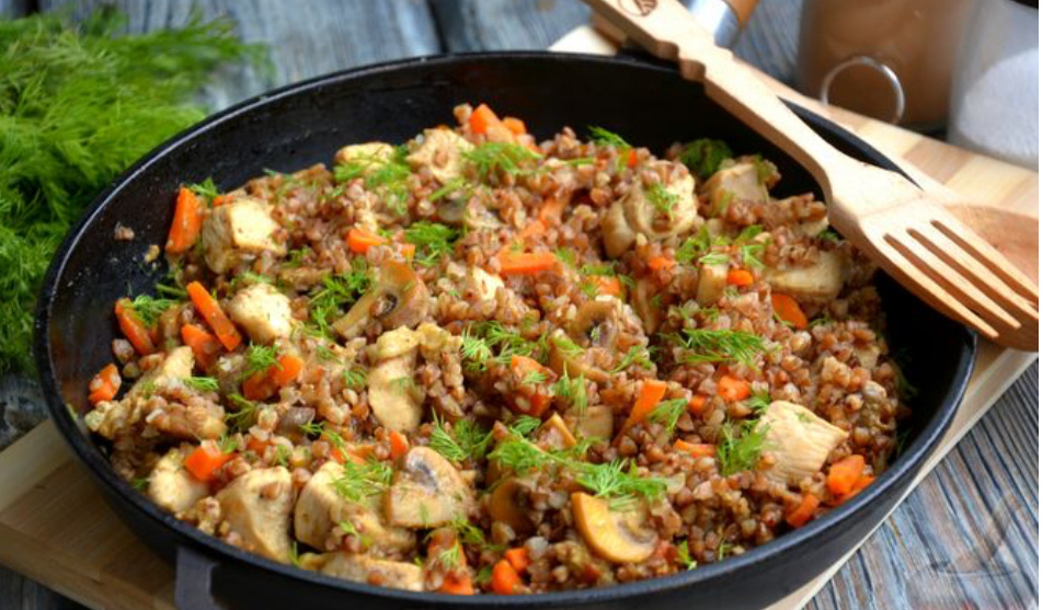 Чтобы гречневая каша получилась вкусной, мы не будем отдельно готовить к ней подливку, а приготовим гречку вместе с кусочками куриного филе, шампиньонами и морковью в сковороде. Крупа впитает соки овощей, грибов и куриного мяса, оставаясь при этом рассыпчатой, а благодаря сливкам получится ещё вкуснее. Пошаговый рецептГречка с грибами, курицей и сливками (на сковороде) Подготовьте все ингредиенты по списку. Приятного аппетита!