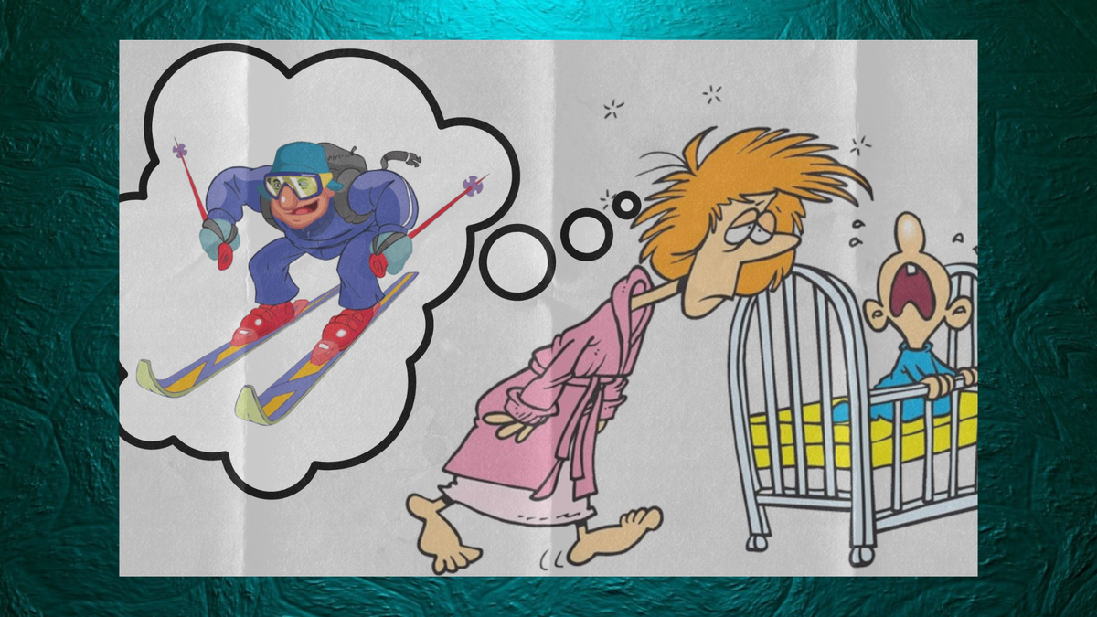 У известных сериальных актеров родился ребенок. Счастливая мама дает интервью и рассказывает, что на выписку из роддома отец ребенка не приехал. Почему? Ему очень хотелось покататься на лыжах с друзьями, и его не было в городе.