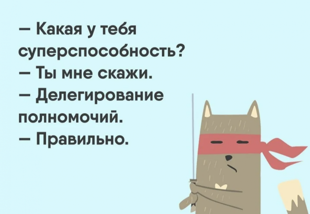 Адекватные ожидания Допустим, у тебя есть "задача". Вообще любая: запилить микросервис; подготовить презентацию к совету директоров; провести миграцию данных в новую базу; переверстать страничку в приложении. И ты подумываешь её делегировать. Насколько качественно и быстро, по твоему мнению, должна быть выполнена работа, чтобы принять её и сказать человеку, что он справился? Если твой ответ: Результат должен быть таким, будто я делал сам У меня для тебя плохие новости: делегирование почти наверняка не удастся. Единственный способ получить результат с таким же качеством и скоростью, как делаешь ты сам – выполнить работу самостоятельно. Сотрудники отличаются от тебя навыками и способом мышления. И это нормально. Хорошая новость состоит в том, что у большинства задач, помимо "эталонного" решения (если такое вообще найдётся), бывает ещё "достаточно хорошее". "Достаточно хороший" результат – именно то, что нужно стремиться получить в результате делегирования. – Есть у меня идея, как попотет