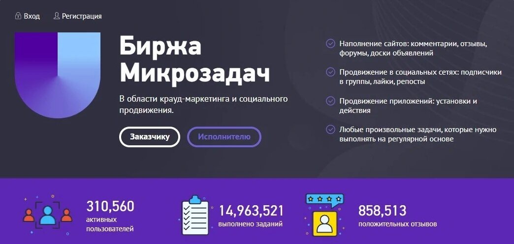 Заработок путем выполнения заданий является наиболее простым способом подработки в интернете без финансовых вложений. Для этого не требуется завершать обучающие курсы или искать клиентов. Достаточно выбрать платформу для работы, зарегистрироваться на ней и выполнять легкие задачи: ставить лайки, писать комментарии, просматривать видео, оставлять отзывы или делиться материалами в социальных сетях. Ниже подборка лучших сайтов для заработка на заданиях. Перейти способы вывода: Банковская карта, ЮMoney, Qiwi, Payeer, Perfect Money мин. вывод 50 руб соцсети ВК, Telegram, Facebook, Инстаграм, Одноклассники, Twitter, YouTube Биржа микрозадач с большим объемом заказов. Стоимость одного действия зависит от его сложности. Например, за подписку на страницу в VK платят примерно 1.5 рубля, а за подписку на Телеграм-канал — 5 рублей. Среди доступных заданий: Чем больше заданий вы выполните, тем больше новых заказов вам предложат. Помимо действий в соц. сетях здесь можно выполнять и другие задачи. Н