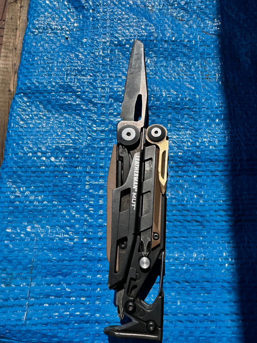 ЦВЕТ - Черный-металлик ДЛИНА В СЛОЖЕНОМ ВИДЕ, СМ - 12,7 ВЕС, ГР - 317,5 РАЗМЕР ЛЕЗВИЯ, СМ - 7,62 Данным ножом Leatherman MUT пользуюсь уже 10 лет. Постоянно ношу в рюкзаке. Напишу какими функциями я в основном пользуюсь, в каком он состоянии и почему лучше сразу брать качественные мультитулы и довольствоваться ими десятилетиями. Клинок Хорошая сталь, не заржавел. Широкое лезвие. Можно им даже раскалывать деревяшки, пару раз затачивал и был как новый. Заточку держит долго. Есть серрейторный участок, которым удобно резать пластик Пила Она достаточно острая. Не тупится долго, двухнаправленный зуб. На фото пилил влажную ветку. Все быстро. Однажды смог распилить ветку в диаметре 80мм Шило, стропорез Здесь все понятно. Свои функции выполняют, но не пользуюсь ими часто. Стропорез со сменным лезвием, но где купить новое и заточнить мне не понятно Молоток Он выполнен в виде наковальни на торце. Площадка большая. Но забивать надо как будто обхватил ручку, поэтому надо быть метким, чтобы поп