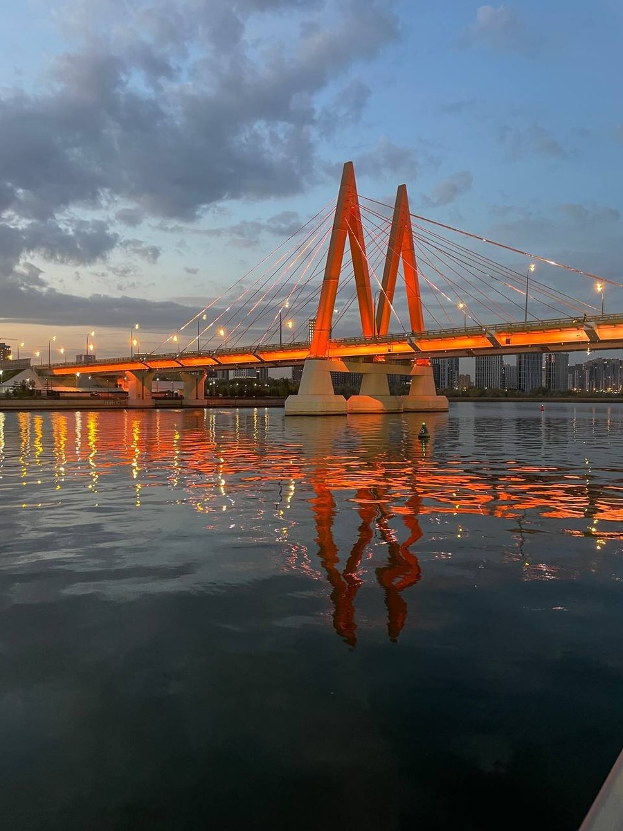 Сегодня мы расскажем вам о самом знаменитом автомобильно-пешеходном мосте Казани — Миллениум. Этот мост обязательно привлечет внимание всех гостей города, даже если они находятся здесь недолго. Почти ни одна обзорная экскурсия по Казани не обходится без поездки по нему. Строительство моста началось в 2004 году, а первая его часть была открыта в 2005 году, к тысячелетию Казани. Это самый высокий мост в городе, его длина составляет 1524 метра. Буква М возвышается на 45 метров над рекой Казанкой, которая является притоком Волги. Полностью мост «Миллениум», или «Меңъеллык» на татарском языке, был введен в эксплуатацию в конце лета 2007 года. Он сразу стал важным участком Малого Казанского кольца, что позволило существенно сократить количество пробок на улицах города. На строительство моста было потрачено более 3 миллиардов рублей. Несмотря на свои массивные опоры мост является вантовым, то есть подвесным. На мосту шесть полос для автомобильного движения и пешеходный тротуар.