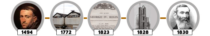 1830 - Аенеас Коффи (Aeneas Coffey) усовершенствовал колонну Сайтна и запатентовал свою колонну для получения зернового спирта Coffey Column Still