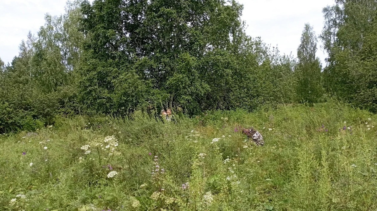 Самая крупная ягода - в траве. На картинке находится три человека, причем они не прятались.