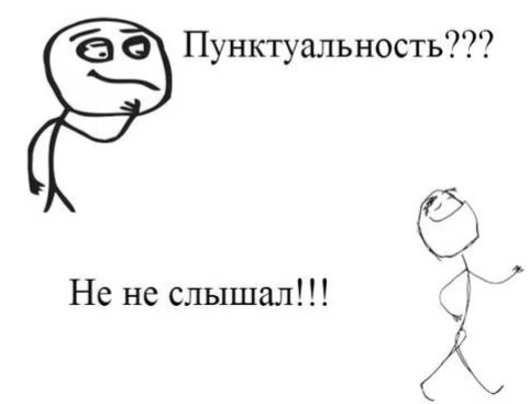 Одно из проявлений уважительного отношения - не опаздывать без причины на встречу. Понимаю, ситуации бывают разные. Но в цифровой век есть банальная возможность позвонить и сообщить о своём опоздании. Даже извиниться можно, не унизив себя самого этим простым оборотом речи "прошу прощения". Чаще всего это показатель характера и, как минимум, безответственности. Не беру в расчёт слишком молодых или слишком зрелых по возрасту. Речь о взрослых, физически здоровых, эмоционально стабильных людях, договорившихся своим языком о конкретной дате и времени. У меня дочь непунктуальностью страдает с детства. Ей уж 20 в этом году, но на работу она попадает на 10-20 минут позже положенного, срывает наши с ней договорённости, собирается куда-то максимально медленно и, конечно, не приходит вовремя. Ладно, ей простительно. Я потерплю, а другие пусть страдают 😅 Но когда это делают другие, незнакомые люди - для меня это верх наглости. Вот сегодня выходной, суббота. У меня назначена встреча, оговорен