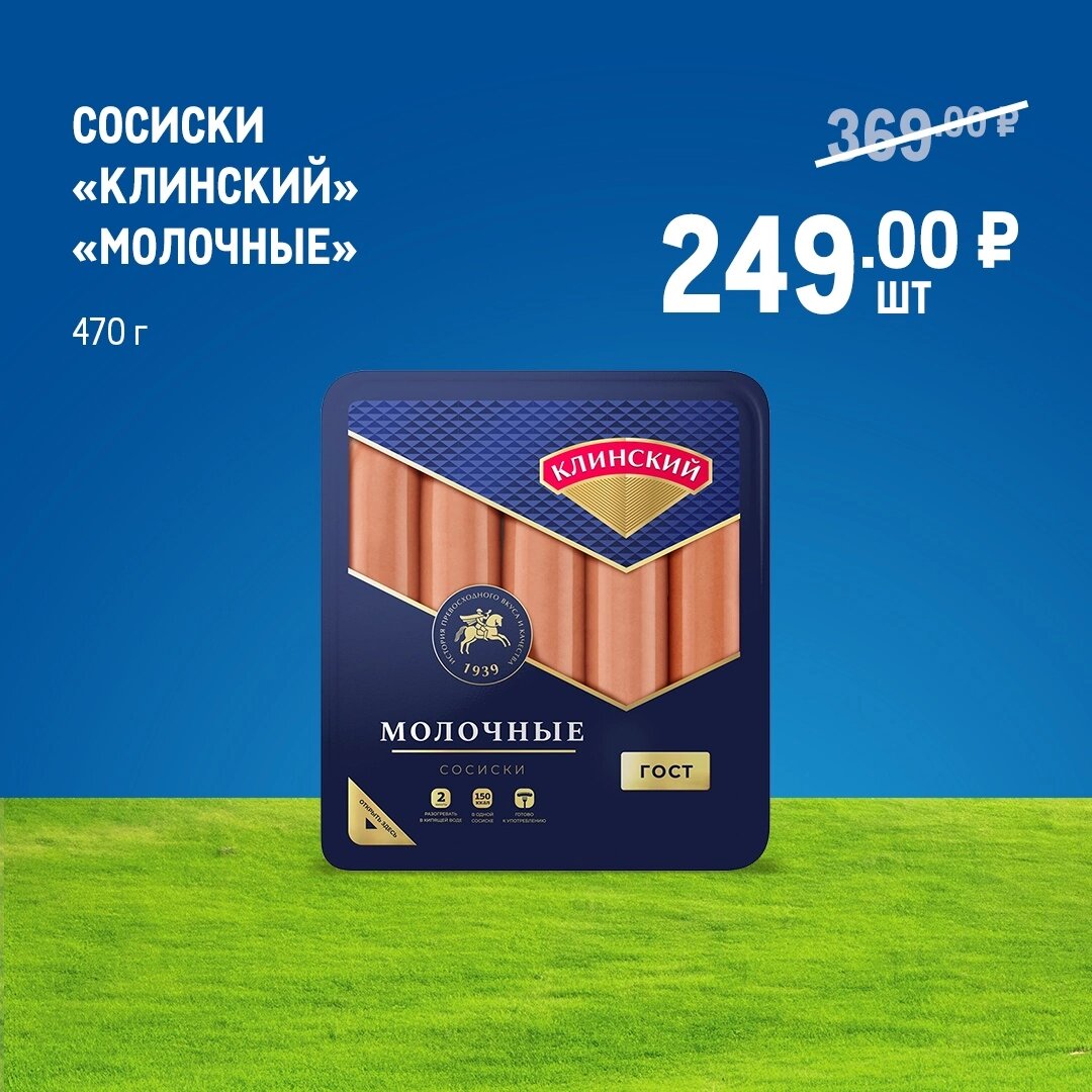 Сосиски "Клинский" "Молочные" Сосиски "Клинский" "Молочные" - это классика жанра! 🌭 470 г нежнейшего мяса за 249 ₽/шт. - цена более чем доступная за такое качество. 💰 😋 Сосиски были идеально приготовлены, с приятным ароматом и нежным вкусом. Они не были сухими, а были сочными и мясистыми. 🥓 Я приготовил их с картошкой и соусом, и они получились просто идеальными! Сочные, румяные, с хрустящей корочкой. 🌟 "Клинский" не подвел! Сосиски "Молочные" - это отличный выбор для быстрого и вкусного обеда или ужина! 👌