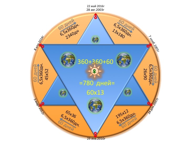 28 августа 2003 года произошло одно из великих сближений Марса и Земли. Наш календарь - часы является подобием древнеассирийского с величиной Среднего (между Солнечным и Лунным) года в 360 дней, где 5 дней были добавочными. По легендам все добавочные дни считались не счастливыми и выбрасывались со счёта, хотя за 72 года набегало 378 дней добавочных или целый синодический период Сатурна. Интересно и то, что 72 года по 360 дней, содержало 65 полных кругов синода Юпитера, а 73 года - 69,5 синодов Сатурна. Арифметика проста:
