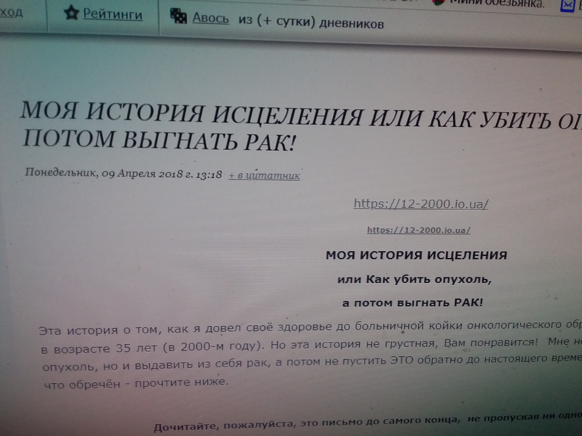 Статью я удалила, чтобы не создавать себе еще больших проблем.Напомню, что все мои каналы без монетизации, денег от написания статьи и ее прочтения не имею Даже теперь и не знаю что можно писать, если такая бурная реакция тех от кого зависит моя жизнь Какие будут предложения борьбы с раком без официальной медицины.Пишите.В комментариях все можно.